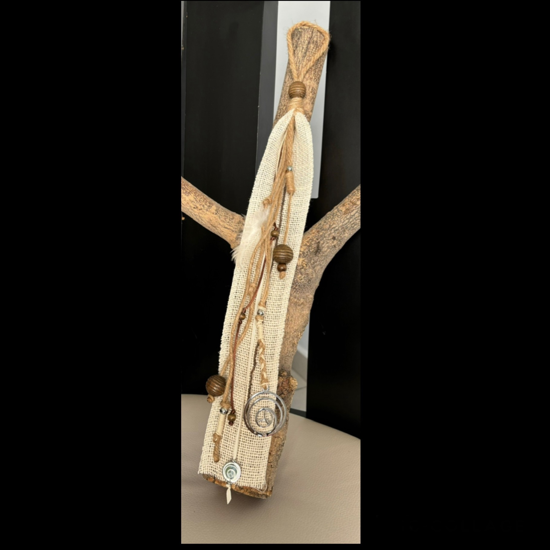 - Colgante de lino con cuerdas de fibra natural trenzada