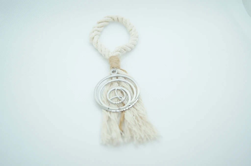 - Colgante de cordón de algodón en crudo atado con fibra natural